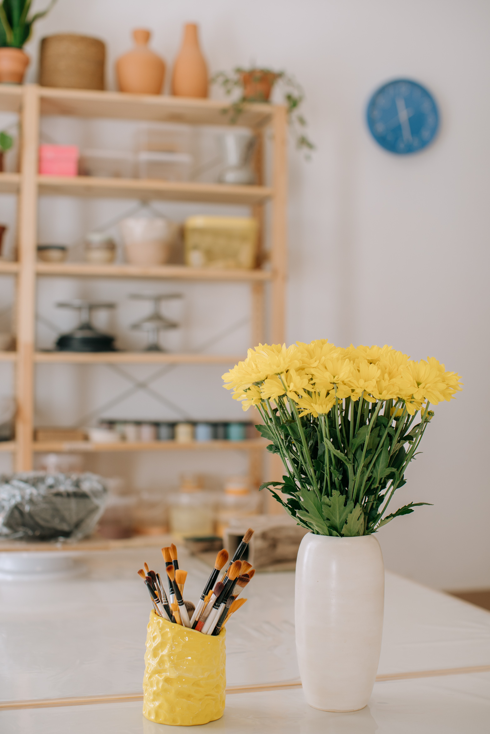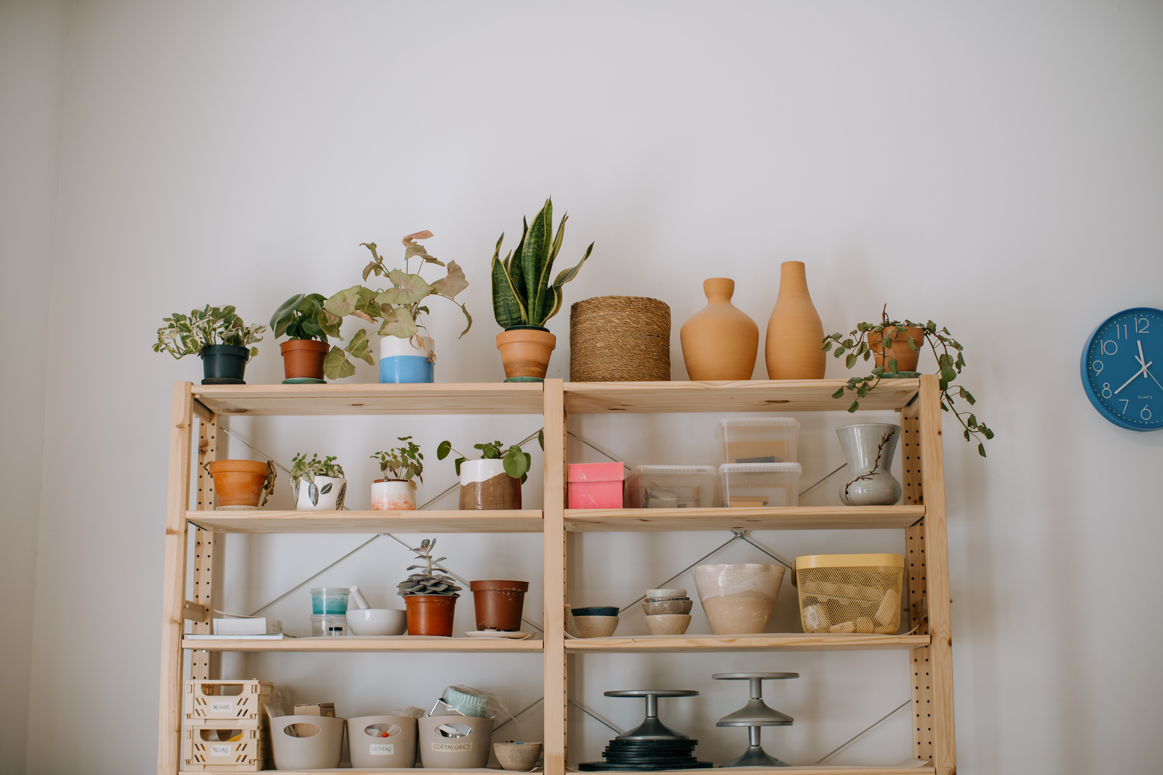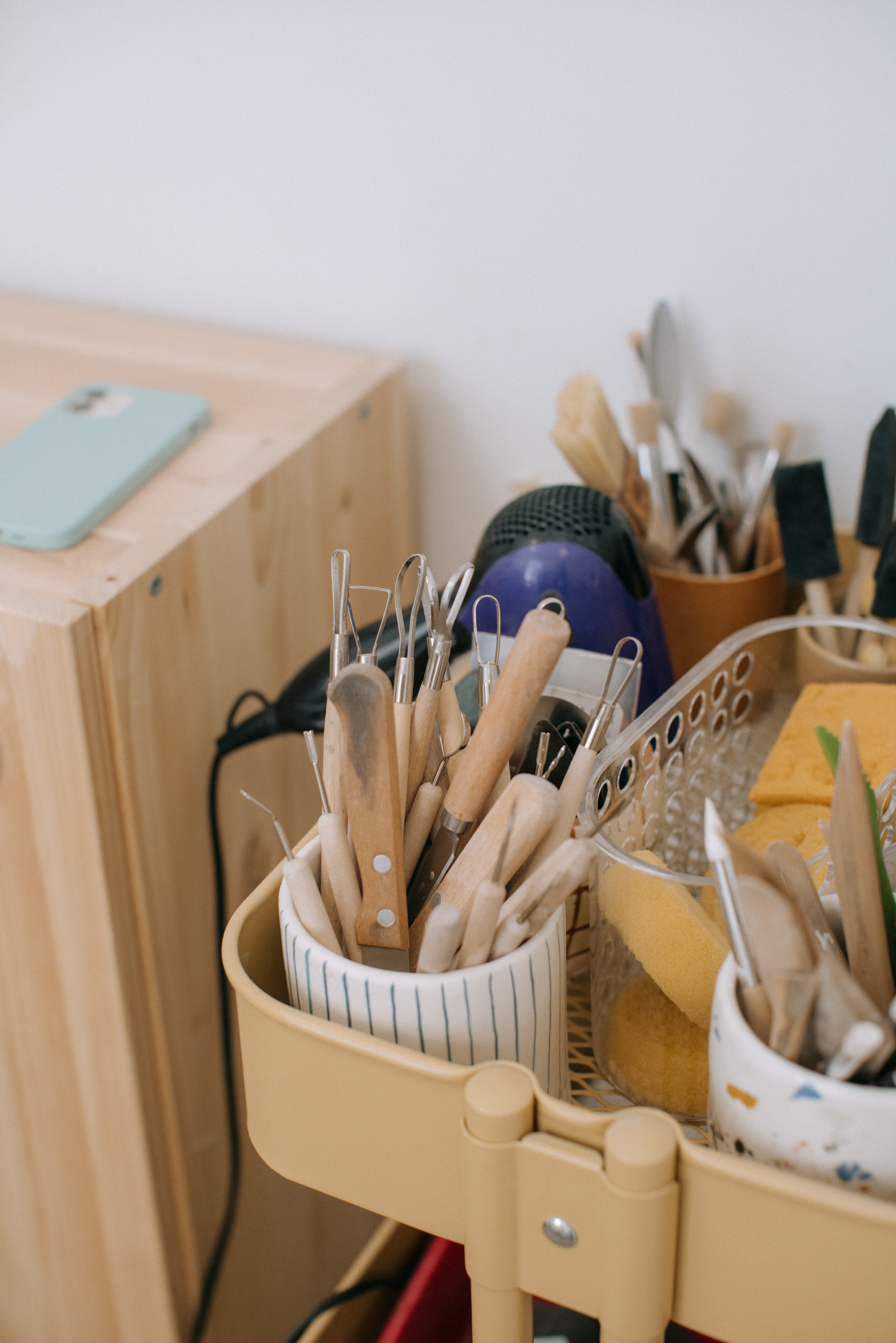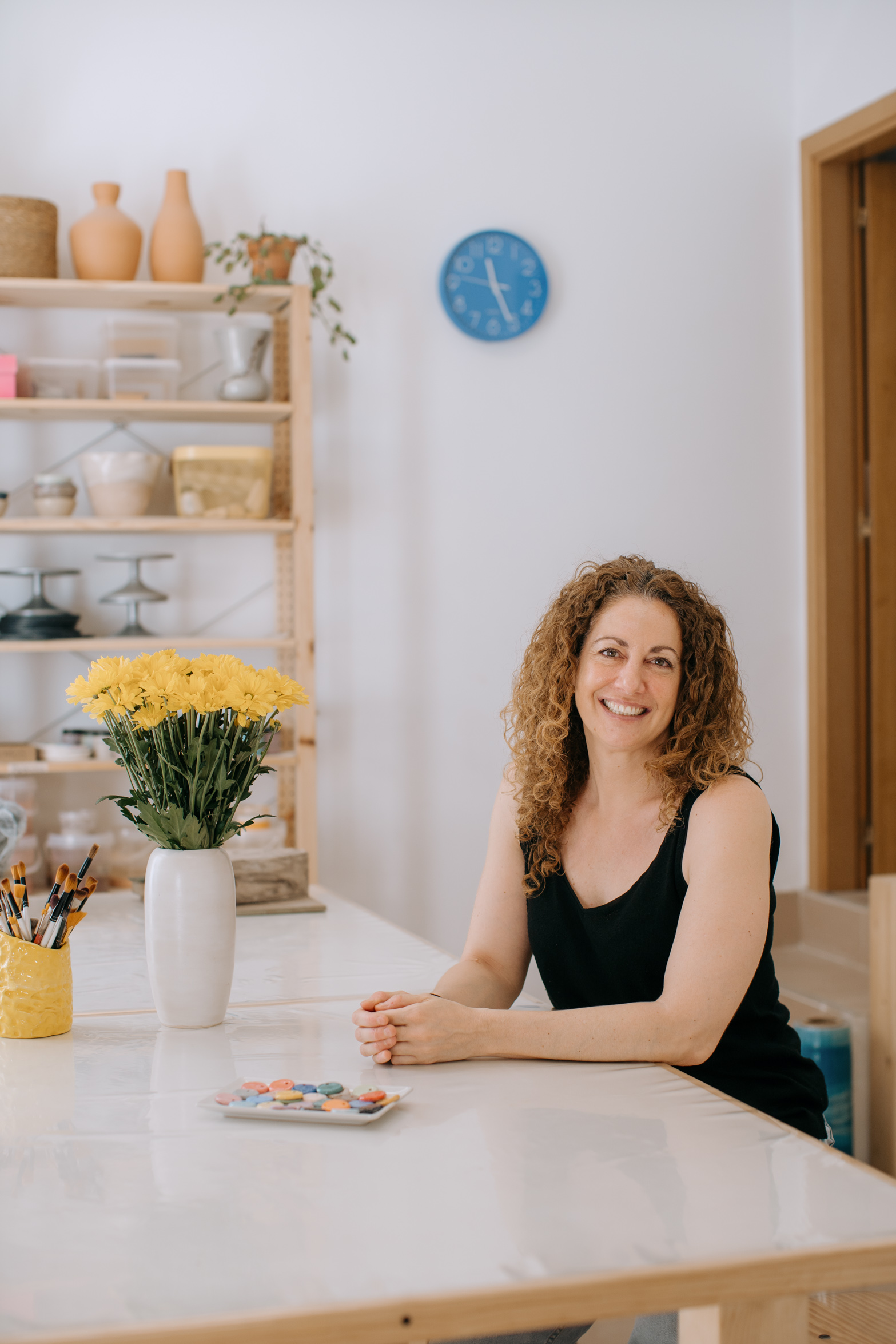 Her studio reflects who she is. After years of working in shared spaces, borrowed corners and even her living room, this is the first place entirely her own. It’s carefully organized, full of tools, works in progress, finished pieces and always changing depending on what she’s creating or teaching. Lately, color has been a big source of inspiration for her, a noticeable shift from the softer, neutral tones that defined her earlier work. That curiosity, and willingness to evolve, runs through everything she does.