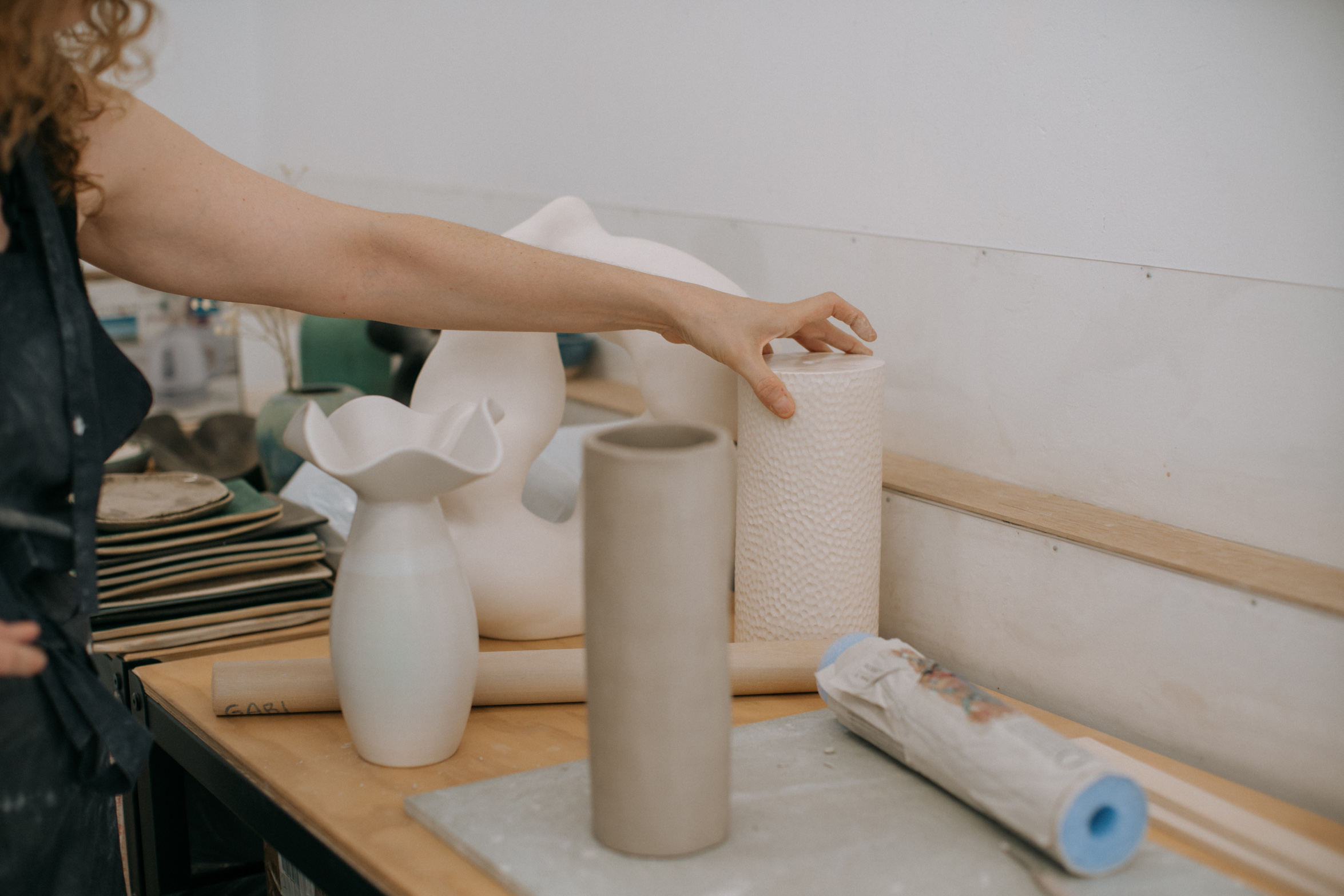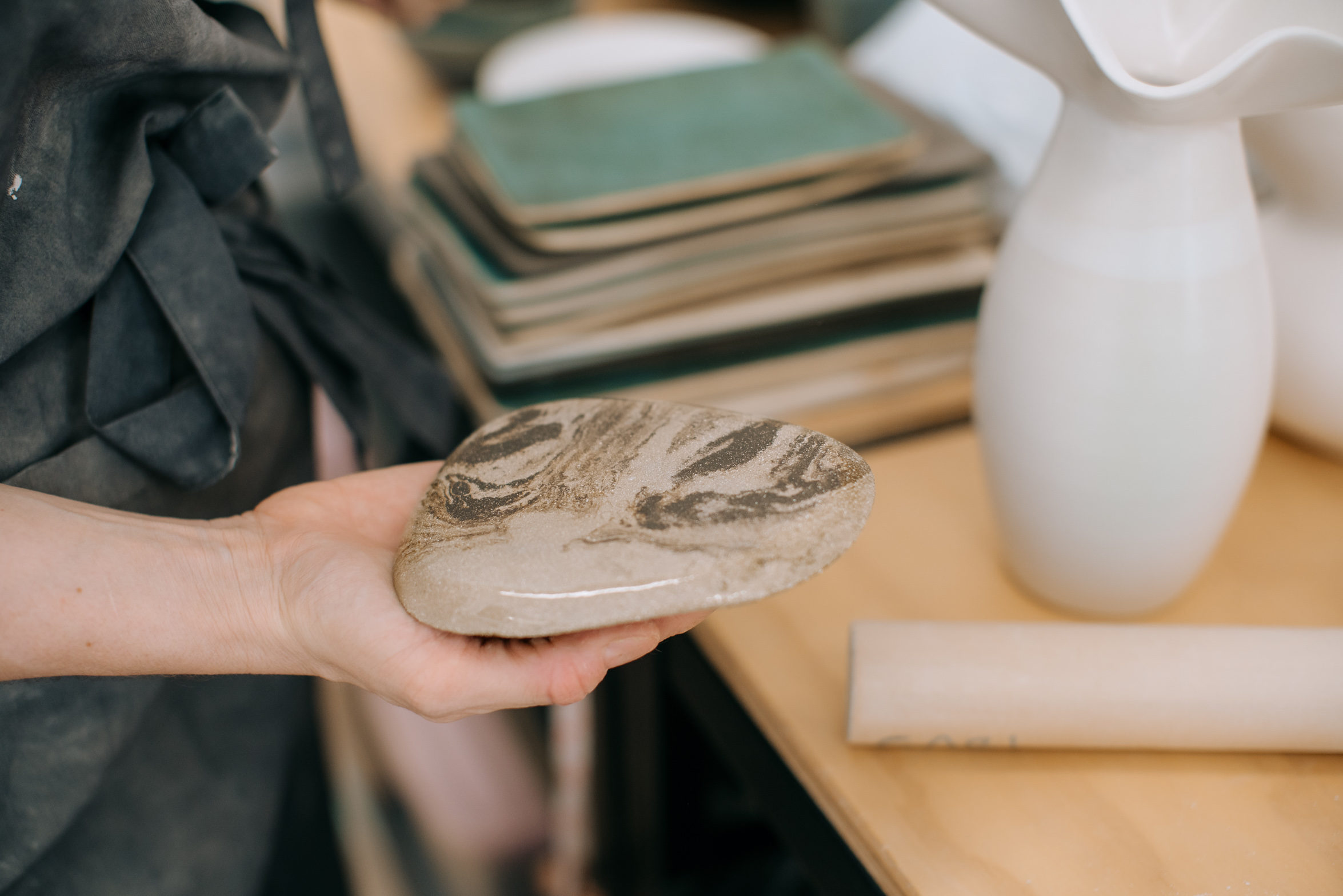 Ceramics is a slow craft and Gabi embraces that fully. Nothing can be rushed, the material has its own timing, and you learn quickly that patience isn’t optional. She enjoys every stage of the process, but there’s something special for her in the final phase, when she can focus on the last details and let them quietly elevate the piece. That patience also brings tolerance for frustration: cracks, kiln surprises, imperfections that sometimes can’t be fixed. Accepting them or letting a piece go is part of the work.