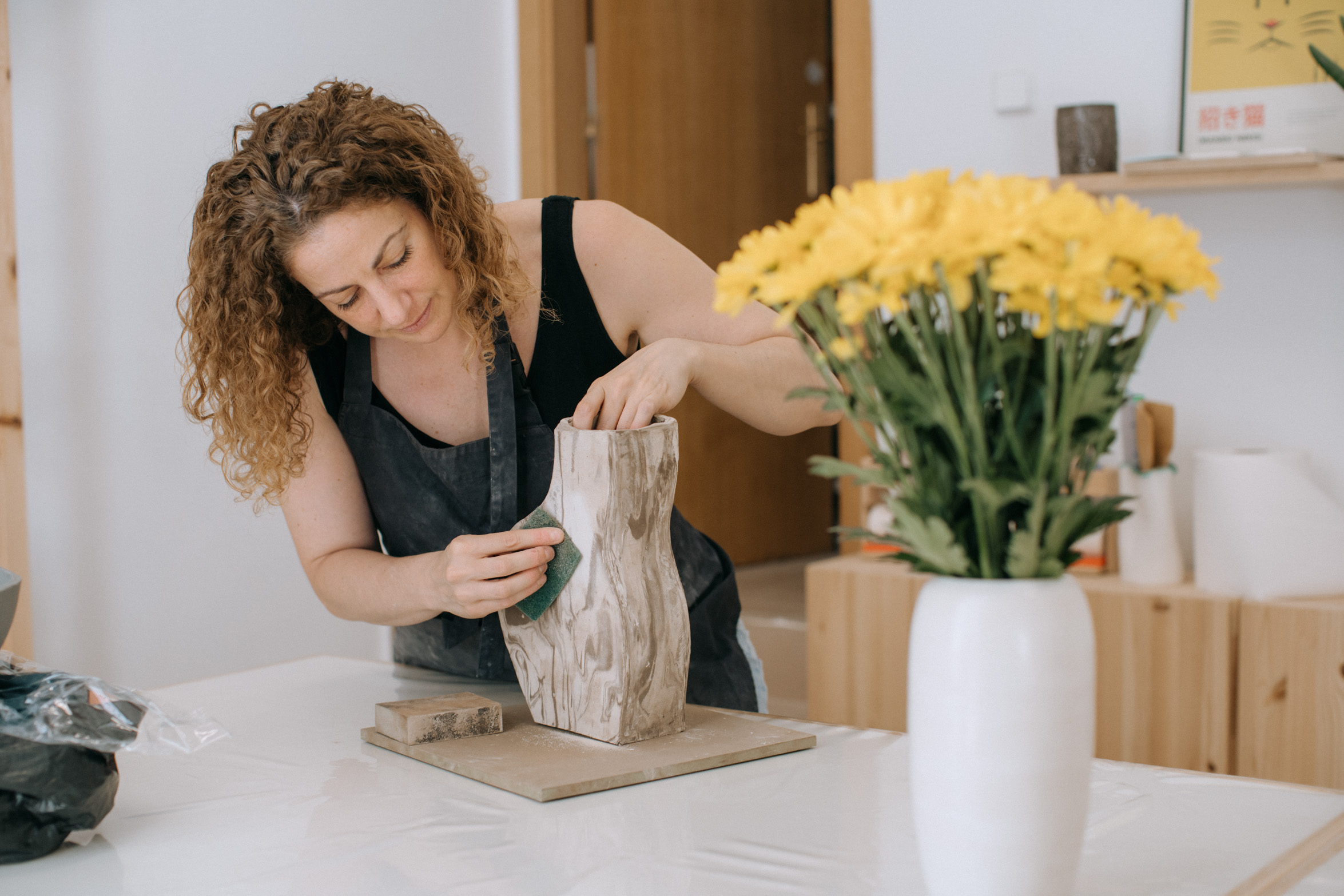 I met Gabi, one of the inspiring women entrepreneurs in Madrid, on a sunny summer morning. She welcomed me into her studio with a big, warm smile and a table topped with bright yellow flowers, a small detail that felt perfectly in tune with her space and her energy. Her workshop, Neko, is filled with light, color and that calm buzz you only find in places where things are truly being made. We sat down, chatted about our creative lives and bonded over something very familiar: finding our own voice over time, by living, trying, failing, and trying again.