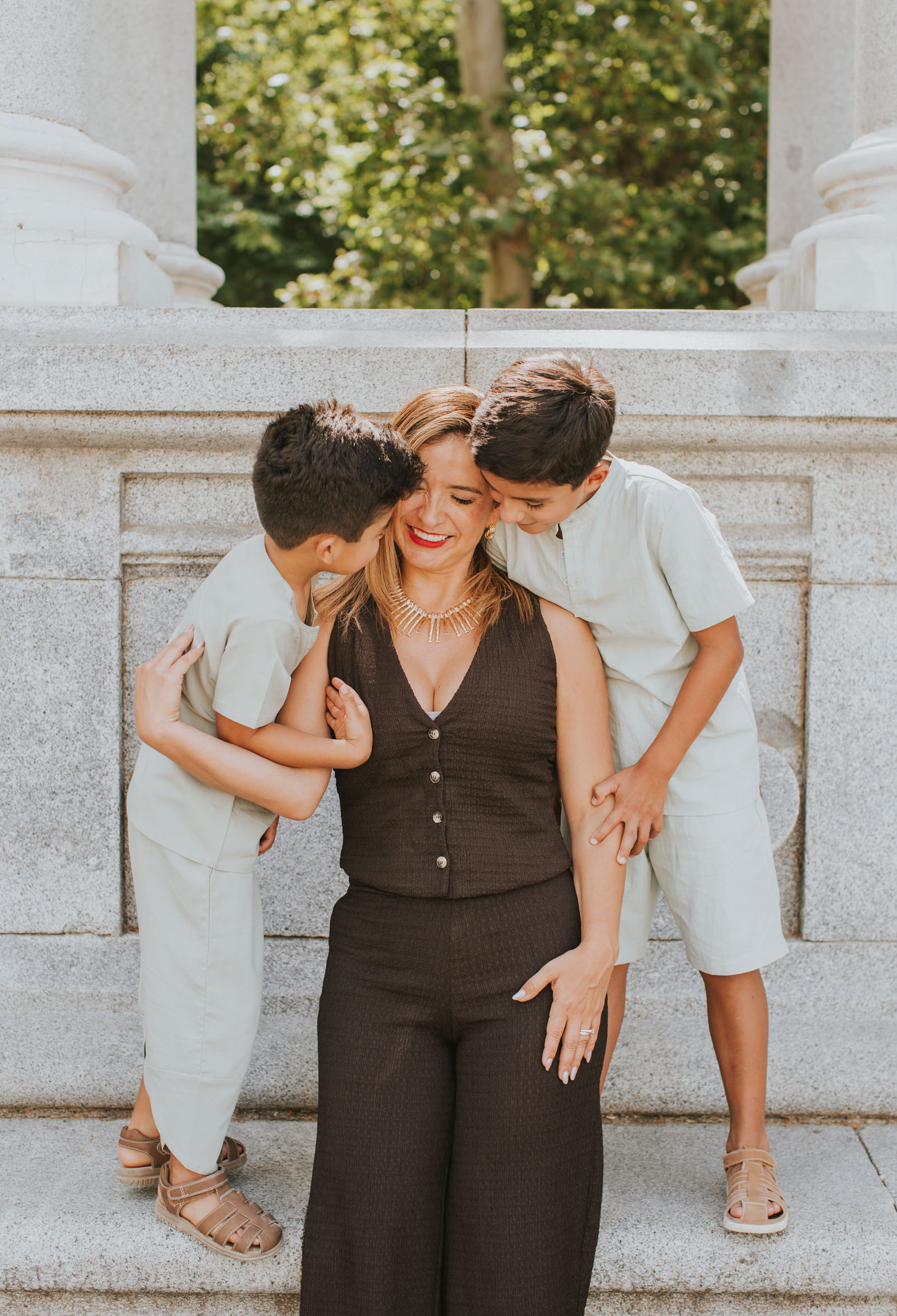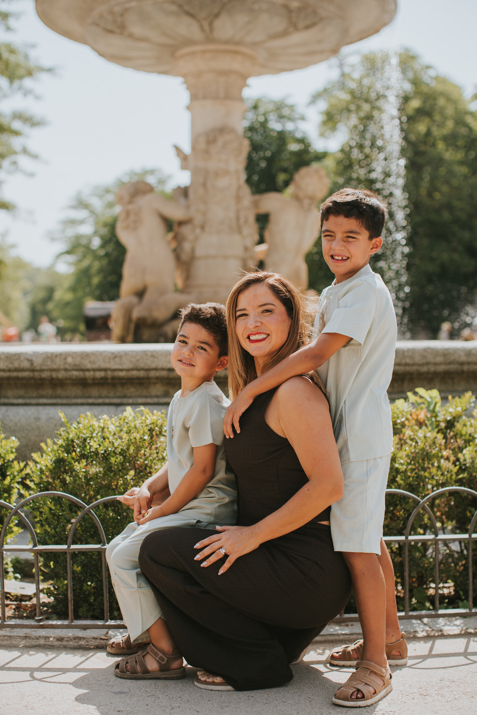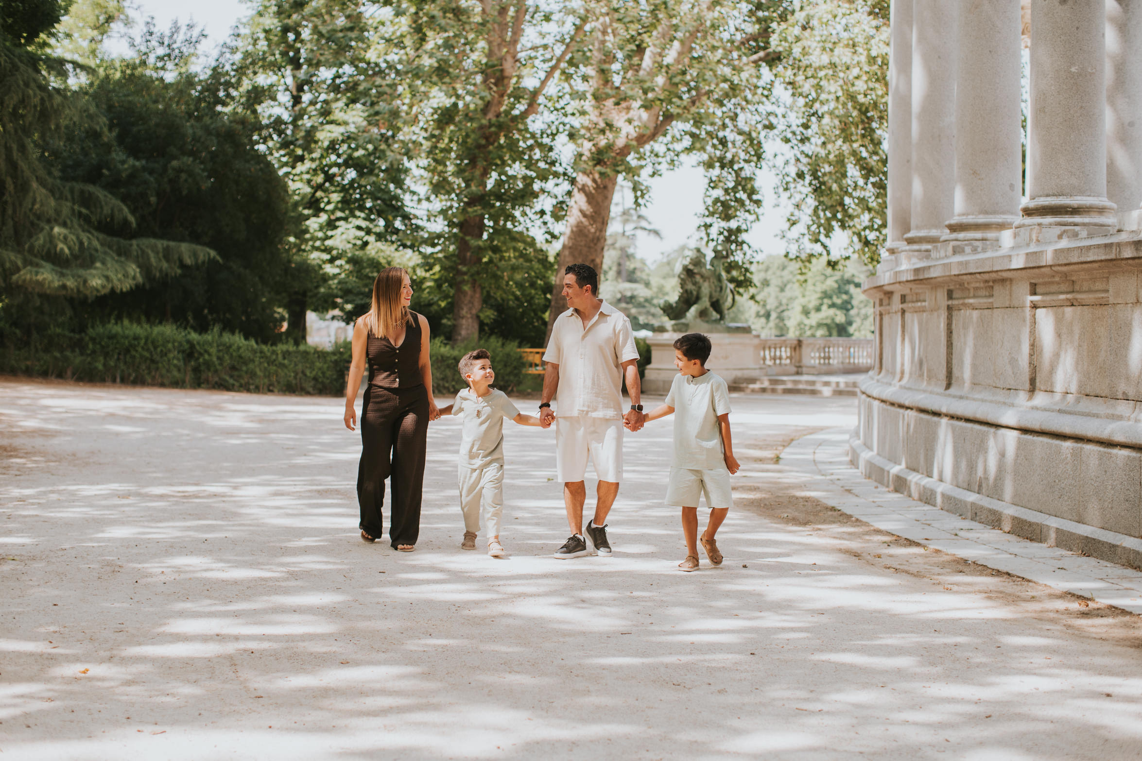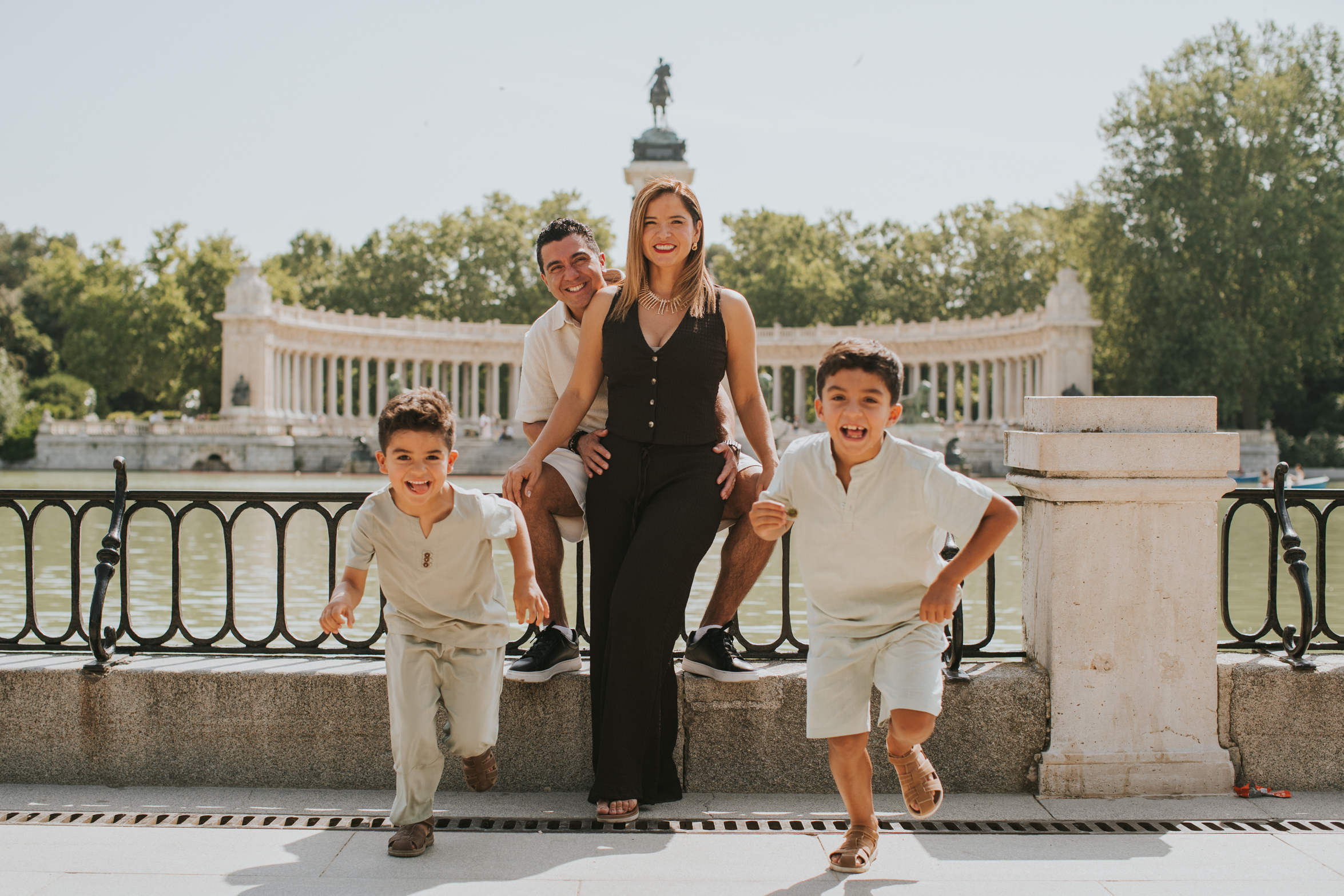 This family vacation photo session in Madrid took place last year in July and has made me long for summer days (despite knowing that I always feel that I've had enough of summer by the end of July!). Angie and her husband had spent their honeymoon in Madrid ages ago. After 15 years of marriage and two kids later, they decided to visit Madrid again and catch up on the city. They booked me for a morning photo session around Parque El Retiro, my absolute favorite in the city to capture families.