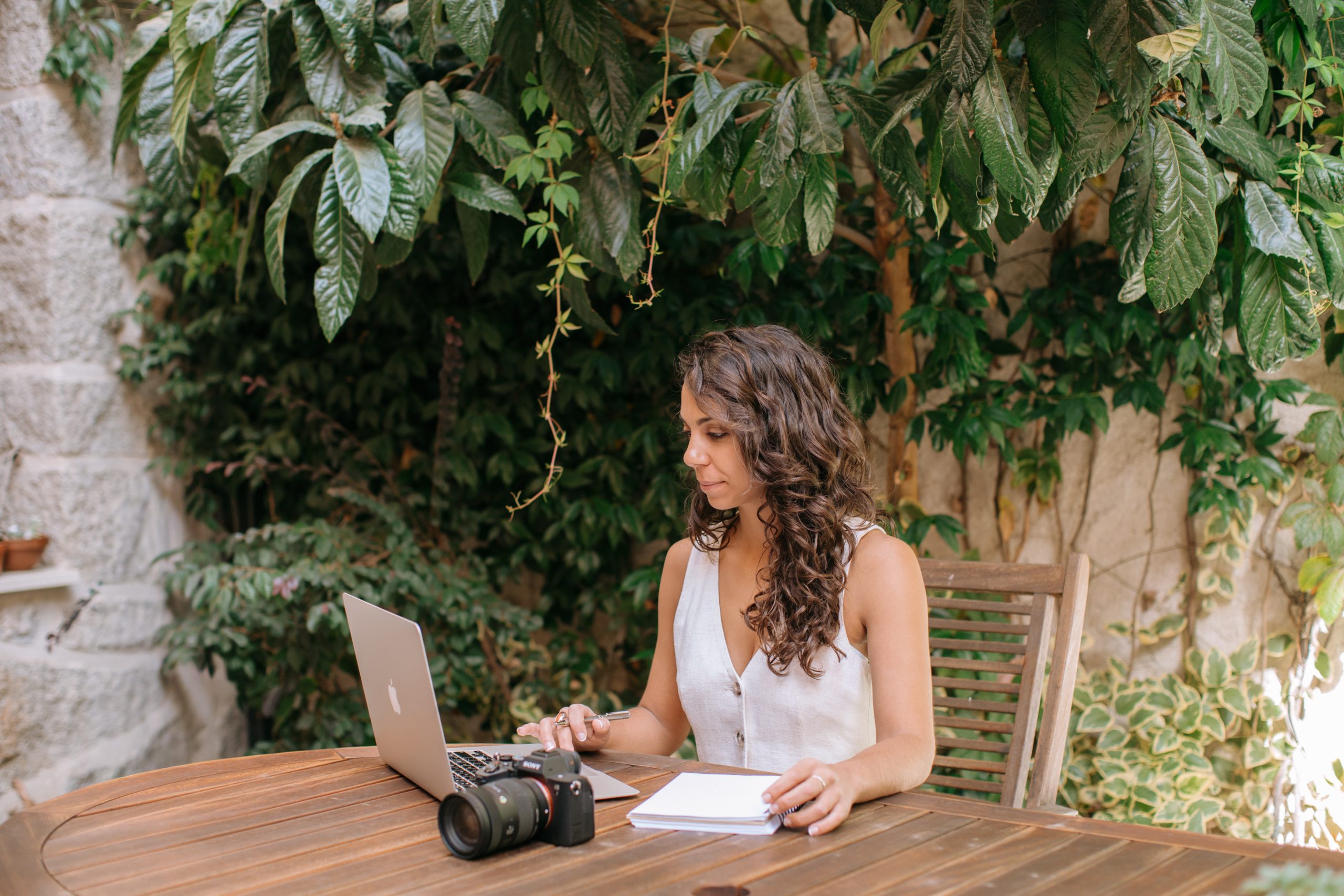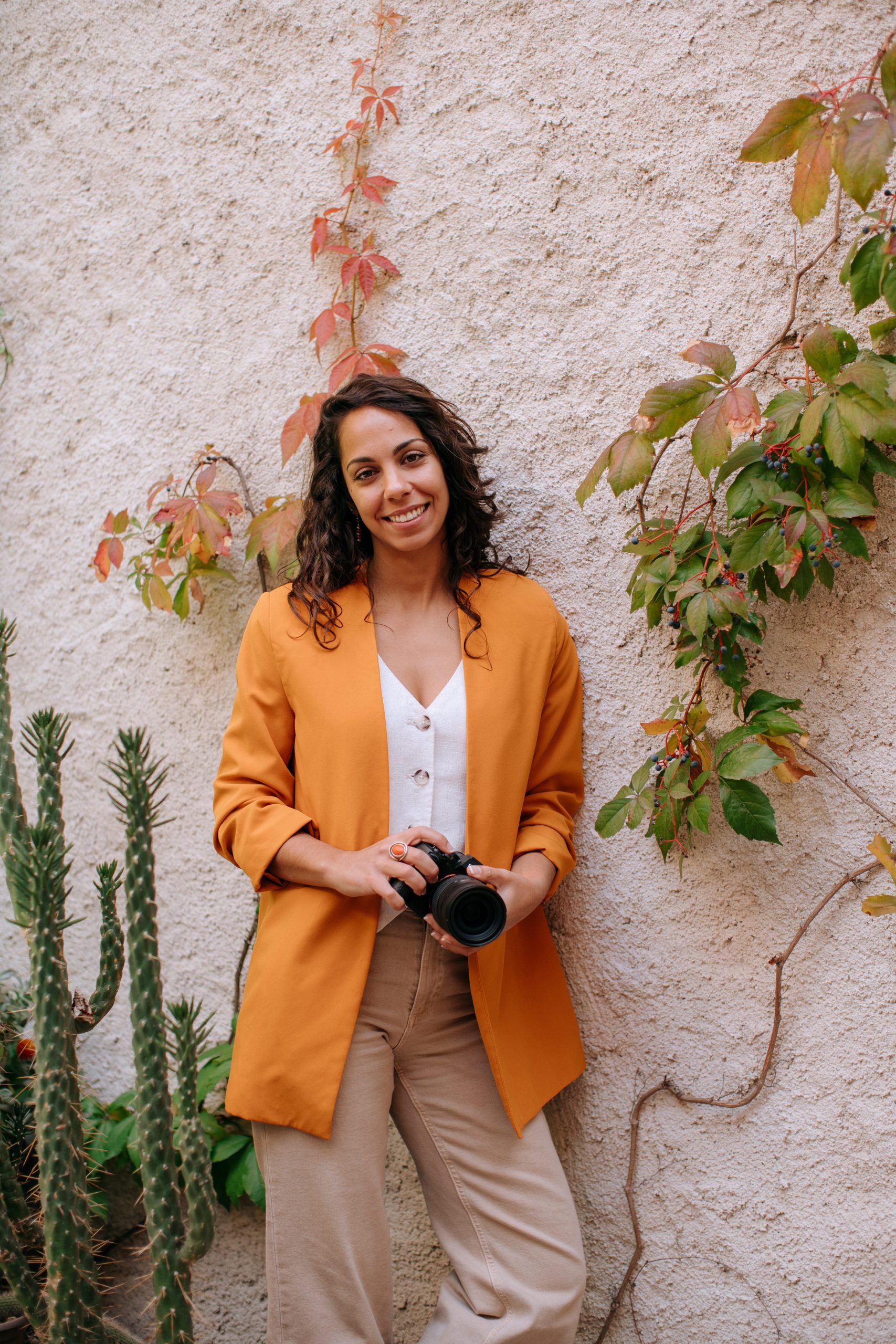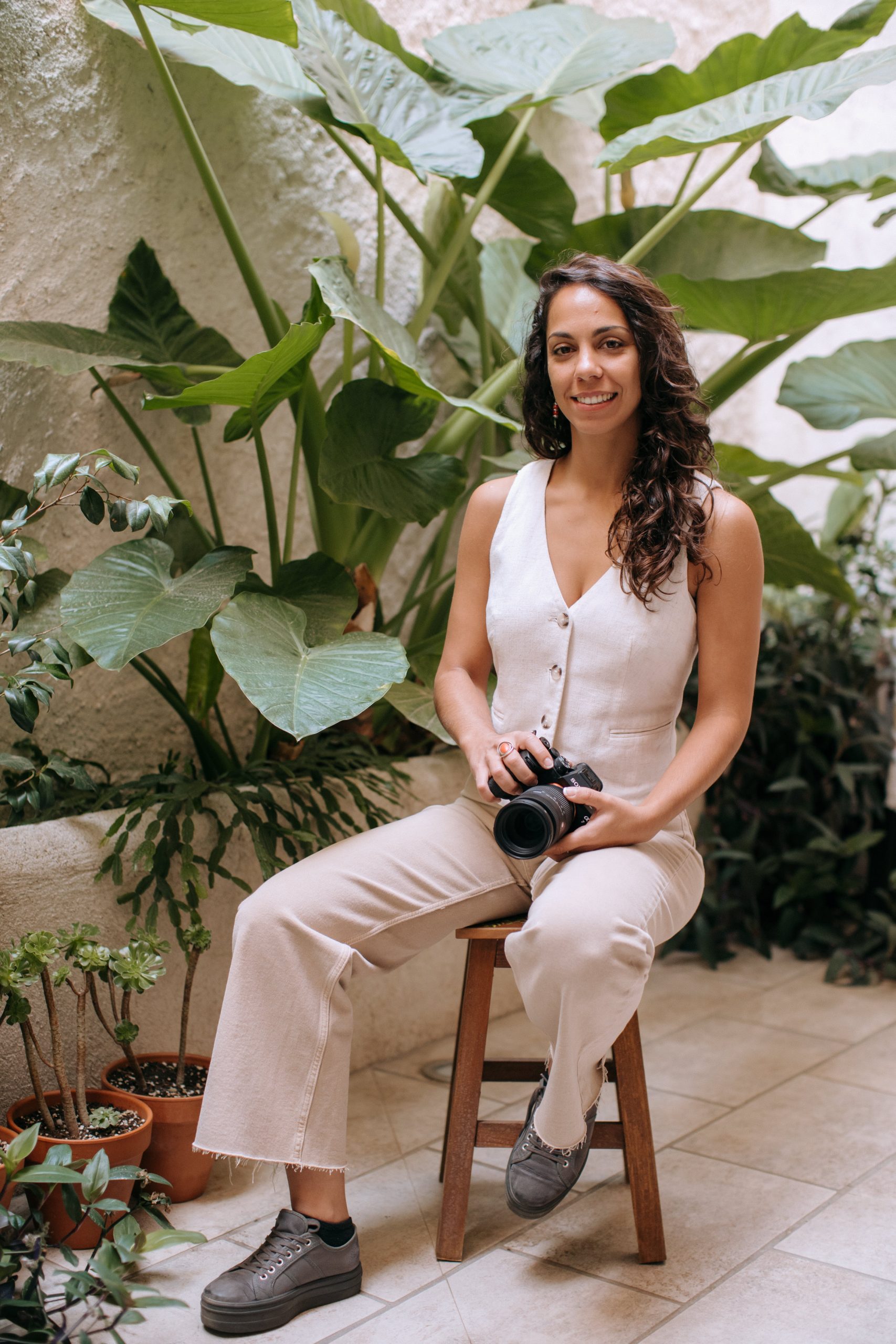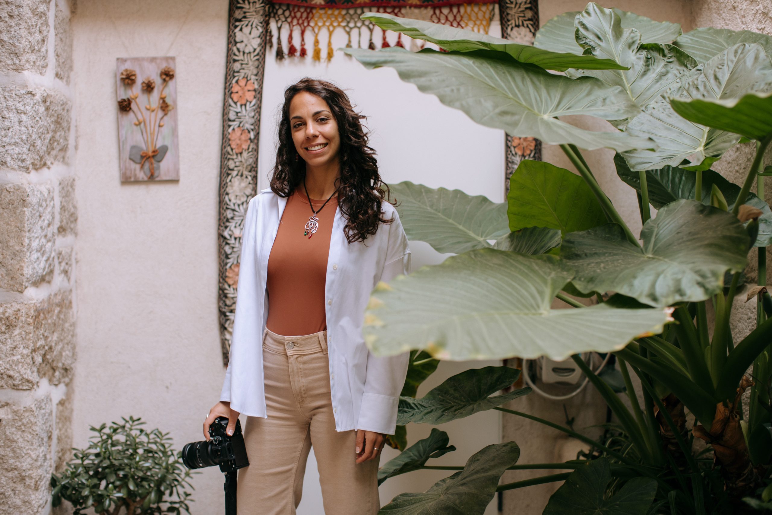 She rented a beautiful rustic house near the mountains in Madrid, which turned out to be the perfect match for her brand vibe: warm, grounded and full of personality. Throughout the session, we worked on capturing her essence, positivity, professionalism, effort and a playful touch. We created images she can use across her website and social channels, mixing portraits, behind-the-scenes moments, and all the tools she uses daily: her laptop, camera, tripod, gimbal and lighting kit.